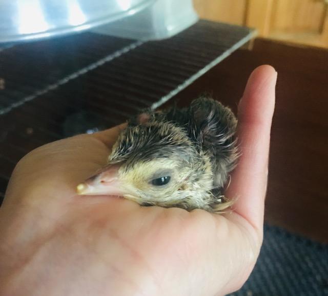 ▲ 孵化したばかりのクジャクのヒナ(2020年7月28日撮影)