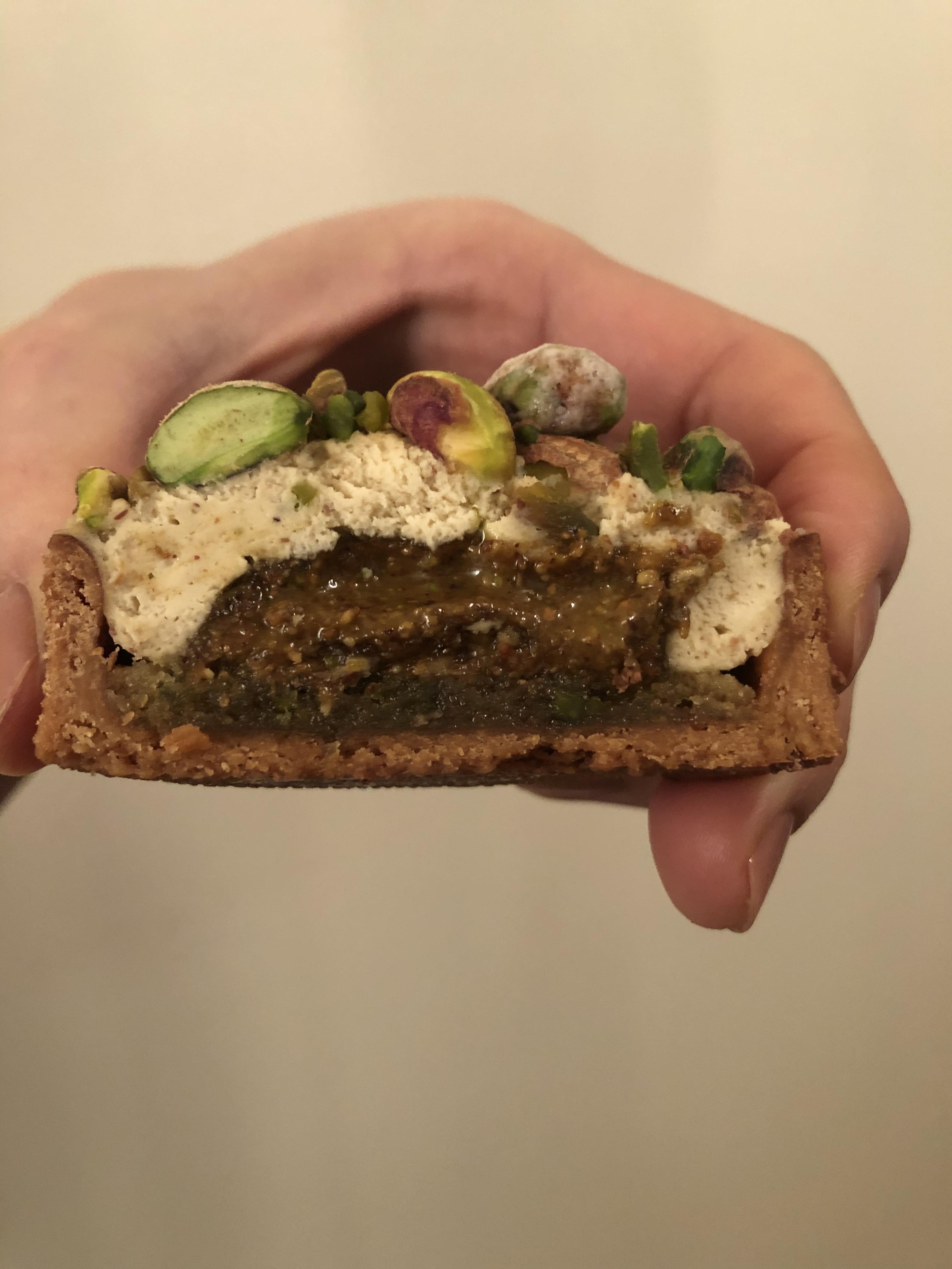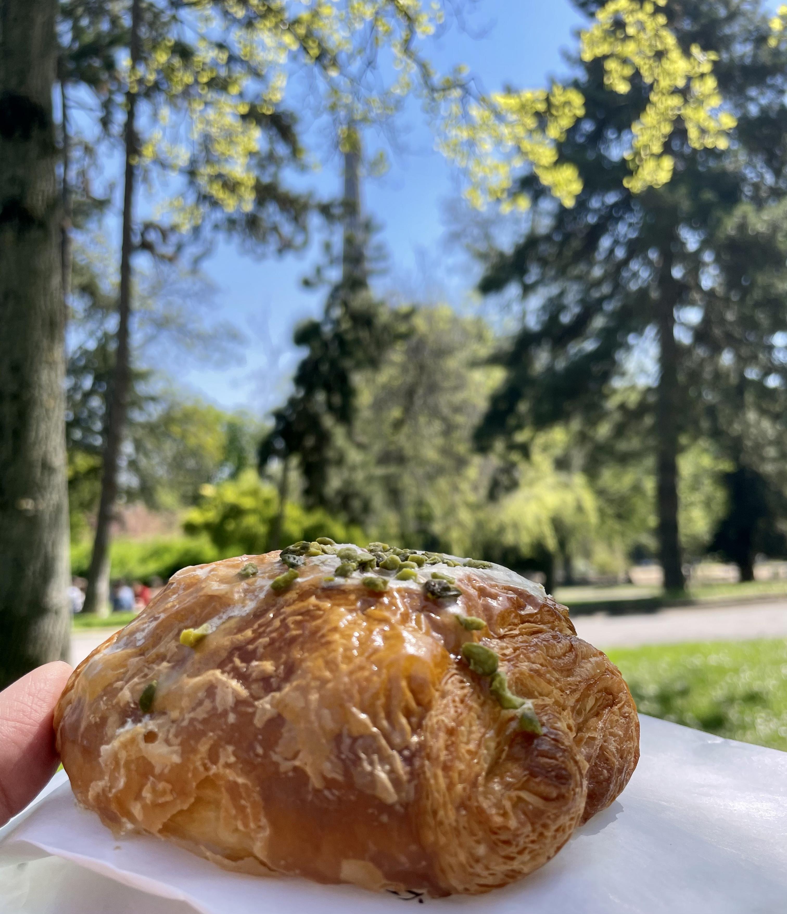 パンオショコラはピスタチオフレーバー。こちらもボリュームたっぷりでおいしいです。