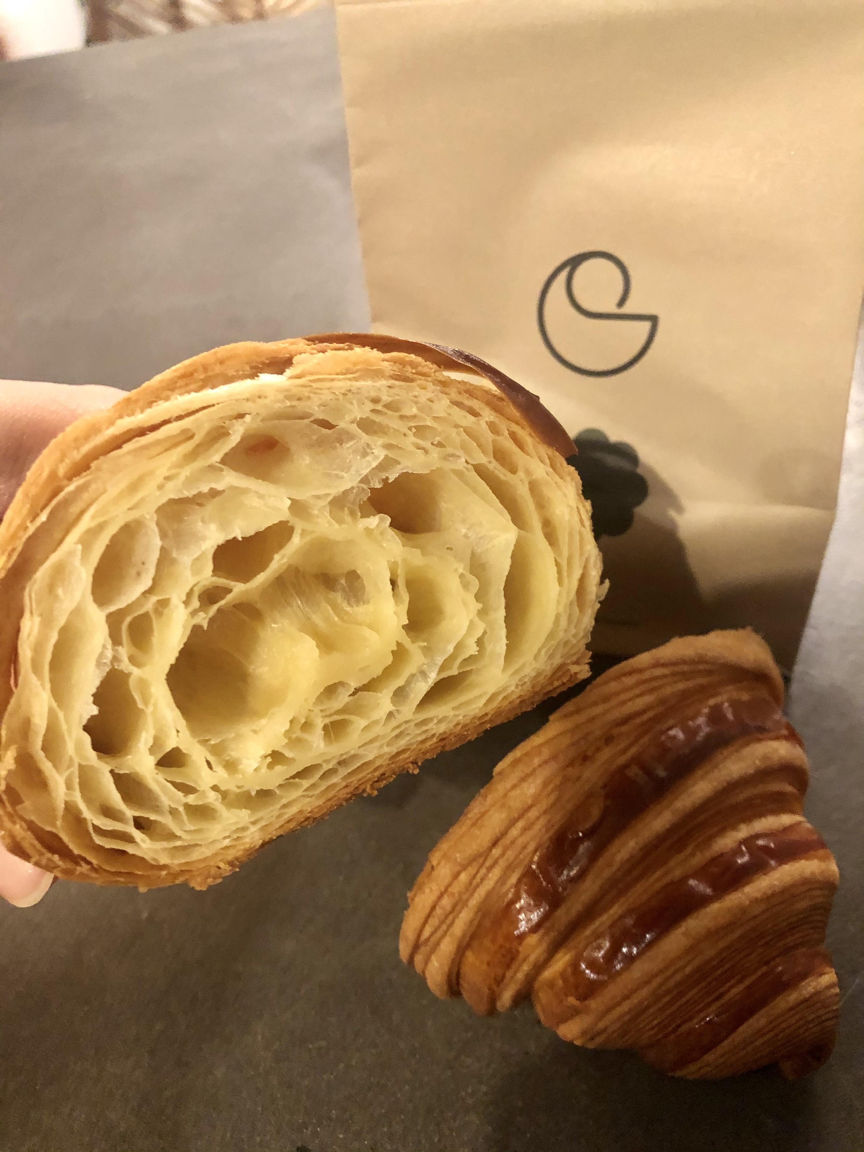 断面もきれい。この層が潰れていないのがおいしいクロワッサンの証拠と言えます。