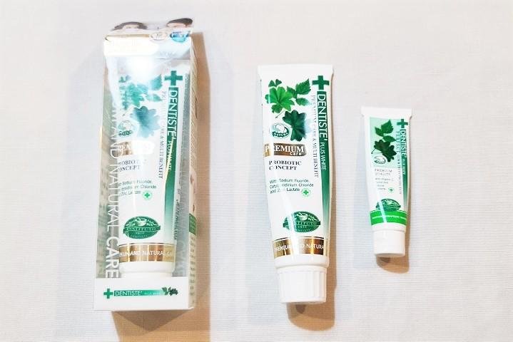 例えば、価格は安くはありませんが、日本の半額以下で購入できて、私が来タイした10年くらい前から(もしかしたらそれ以上前から?)、朝目覚めてすぐキスができるということで話題になったDENTISTE(デンティス)の歯磨き粉は、現在も人気でおみやげに購入するという人もいます。以前、購入して、感動するような効果は得られなかったので一度きりになってしまっていたのですが、旅行用に準備した歯磨きセットに入っていた歯磨き粉(上写真の一番右の商品)がとてもよく感じられて、少し前から再び使用するようになりました。ただ、値段の知らない夫も、どうやら値段の安いほうの緑色パッケージの歯磨き粉の製品のほうが好きなんだということを、見た目が気に入って白色パッケージの製品(上写真の左、中央の製品)をまとめ買いしたあとに気がづきました……。成分が異なりますし、好みは個人差があると思いますが、高いかろう=よかろうではないなぁ……とつくづく感じるバンコク生活です。