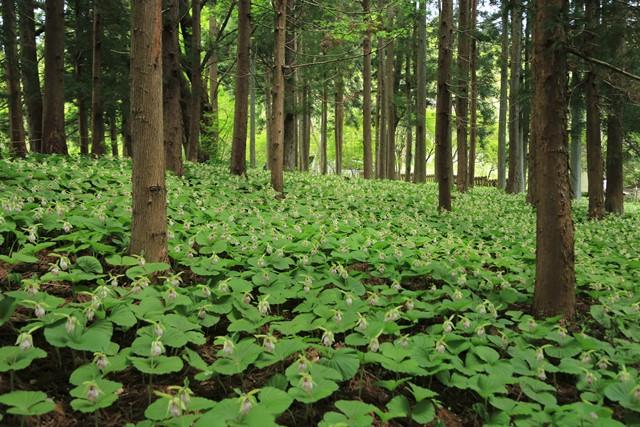 個人が所有する20aほどの杉林に約2万株のクマガイソウが群生しています。