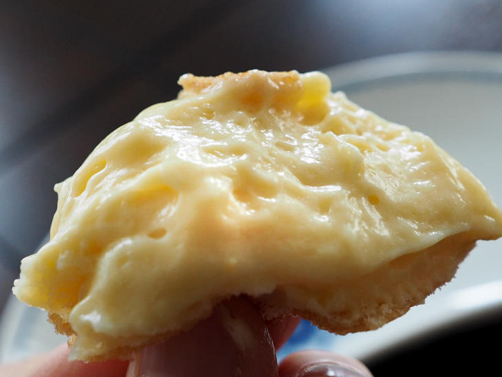 手でちぎると、とろりとしたクリームがこぼれ落ちます。