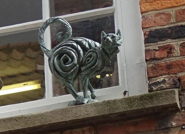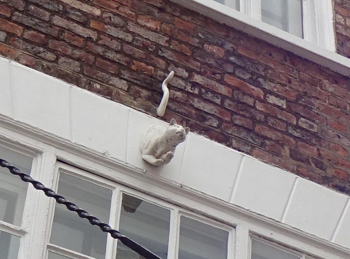 そんなヨークで、ちょっと変わった町歩きを楽しみたい方におすすめしたいのが「ヨーク・キャット・トレール」です。町なかにある建物の壁や屋根、窓辺にあしらわれた猫のオブジェを探すという趣向で、その数は21匹!