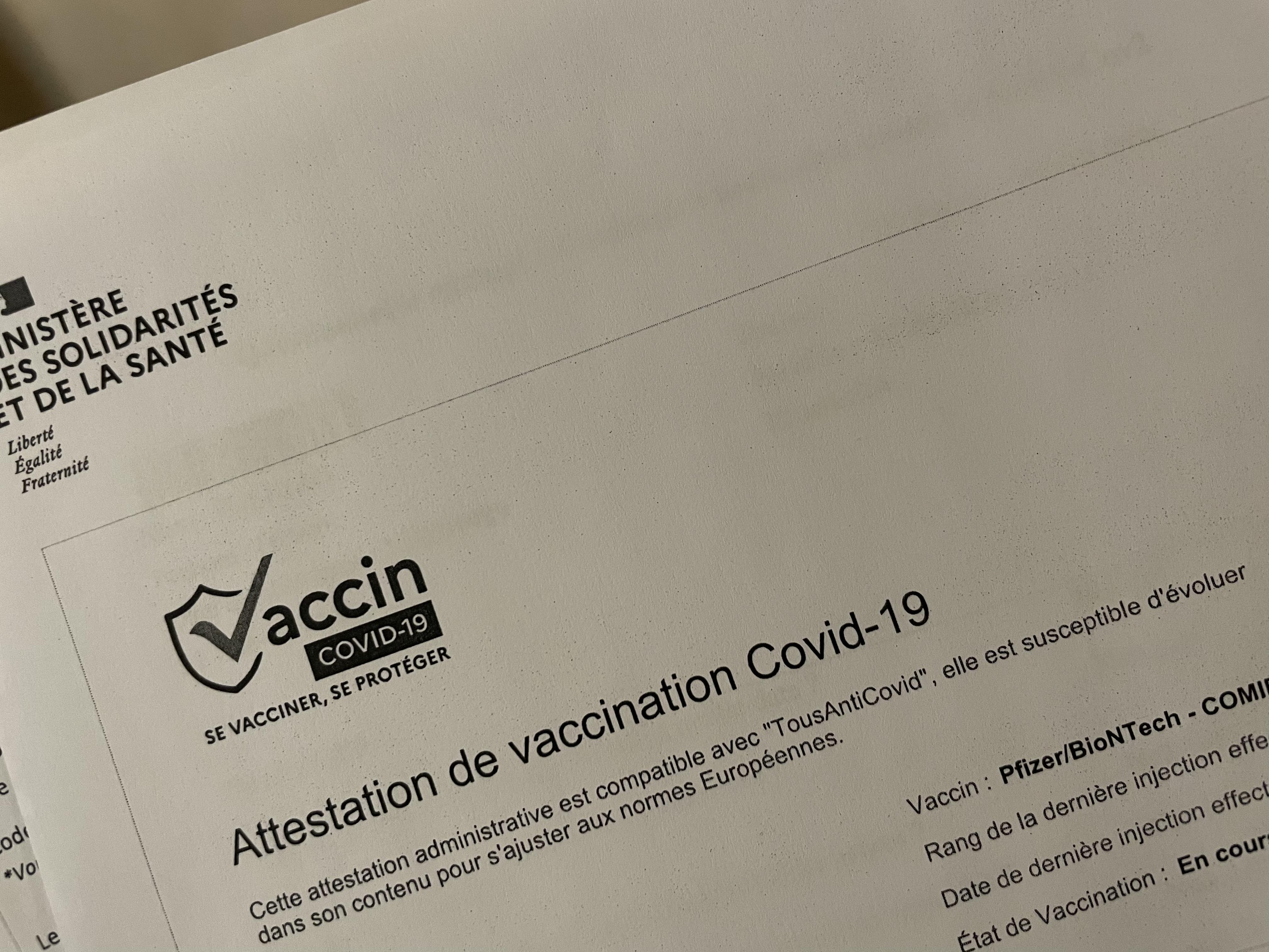 これは、2020年5月から始まったTousAntiCovidCarnetというアプリケーションにワクチン接種の登録項目が増えたものです。