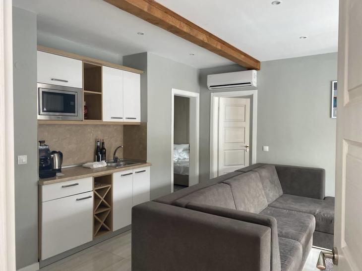 各ヴィラにはミニキッチンとリビングルームがついています。