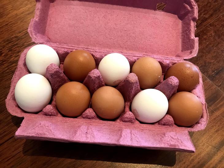 かれこれ20年以上前、家庭科の授業で赤玉も白玉も栄養価は同じだと習ったけれど、日本では赤玉と白玉がごっちゃに売られていることはないのでちょっとびっくり。ふーむ。壮観。