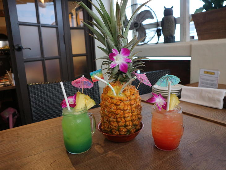 カクテルも充実しています。パイナップルを丸ごと使ったピナコラーダ、マイタイ、ブルーハワイでハワイ旅行気分もすっかり盛り上がり。ノンアルコールにもできるので、アルコールが苦手な人や未成年者でも楽しめます。