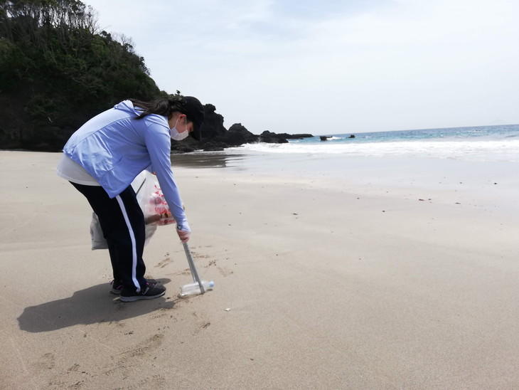 プラスチックやペットボトル、木材や漁具、たばこの吸い殻などなどを拾っていきます。いざ集めると多いのか、少ないのか……袋いっぱいにしたい気持ちと拾うものがないうれしさの葛藤がありましたが、あらためてビーチの美しさ、海のきれいさを実感することができました。