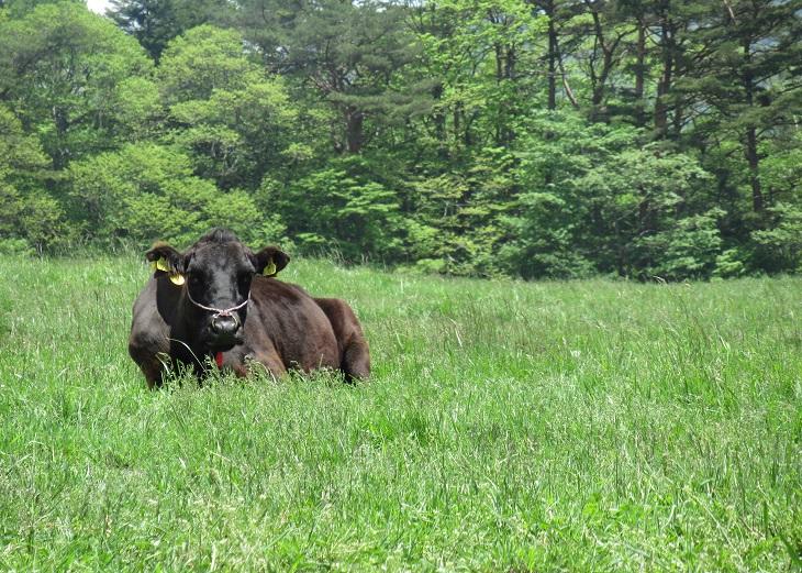 涼やかな山のなかの遊歩道を10分ほど歩くと、雄大な牧場が広がっている場所に出ました。