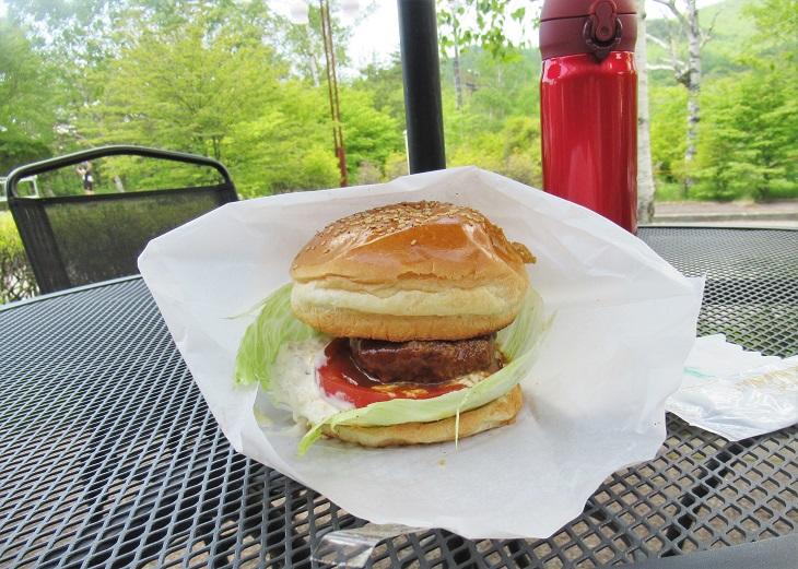 レストランで手作りしている「まきばバーガー(税込650円)」をテイクアウトでいただきました。甲州ワインビーフ100%のハンバーグに厚切りトマトと自家製タルタルソースがたっぷり。ボリューム満点で大満足のおいしさでした。いまだけ特別価格だそうですよ。