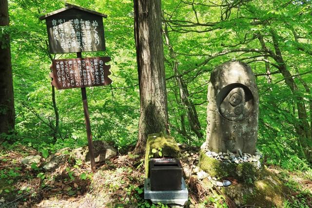 さらに進んで、弥作滝入口に立つ「出会い道祖神」