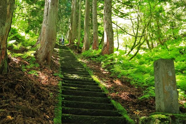 6体の道祖神や2本の滝、樹齢400年超の杉並木や石段など見どころに富んでいます。