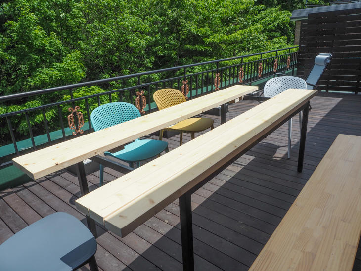 眼前に広がる緑の木々を前にテーブルでのんびり森林浴をしたり、実はテラスにも「コンセント」があるので、青空の下で仕事ができます。