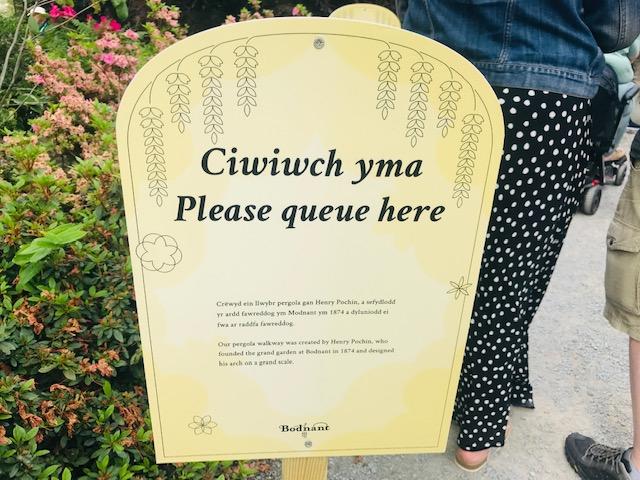 現在、ボドナント・ガーデンの見学には事前のウェブ予約&チケットの購入が必要ですが、昨年はロックダウン中に見頃を迎えてしまったこともあり、今年は例年以上の見物客でにぎわっているようです。私が訪ねた平日でさえも閉園間際までキングサリのアーチ入口には順番待ちの列ができていました。