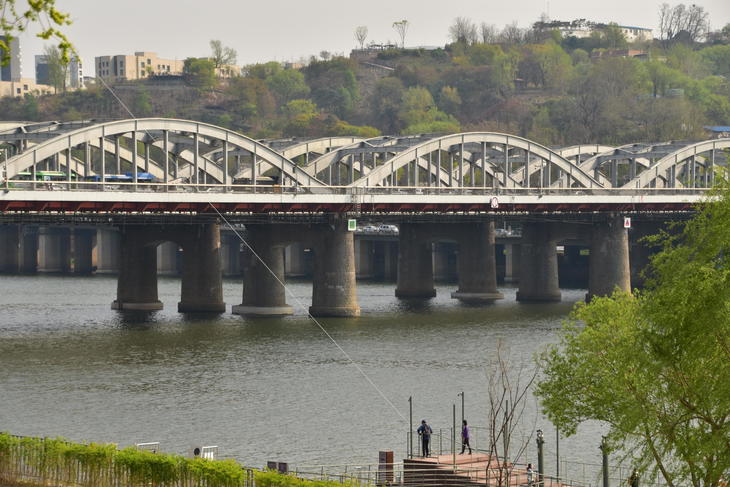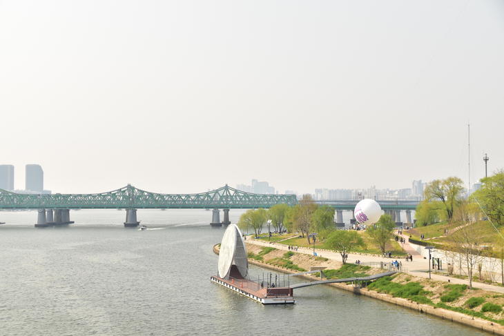 漢江大橋(ハンガンデキョ)を歩いて渡り、中間辺りに島があります。