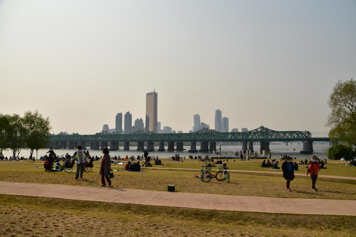 ソウルに島があるの?と思われるかもしれませんが、ソウルの真ん中に漢江(ハンガン)と呼ばれる川があり、そこにぽつんと浮かぶ小さな島、ノドゥル島(ノドゥルソム)があります。島ですが、橋と繋がっていて、歩いて行ける公園になっています。