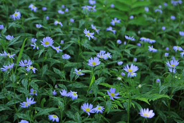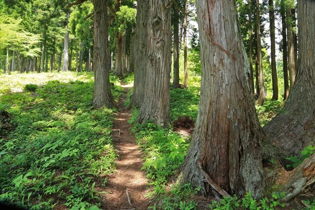 ヒメサユリなどを楽しみながら杉林内の参道を進みます。