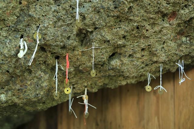 岩の孔に紙縒り(こより)や糸などを通して結ぶと、縁が結ばれると云われています。