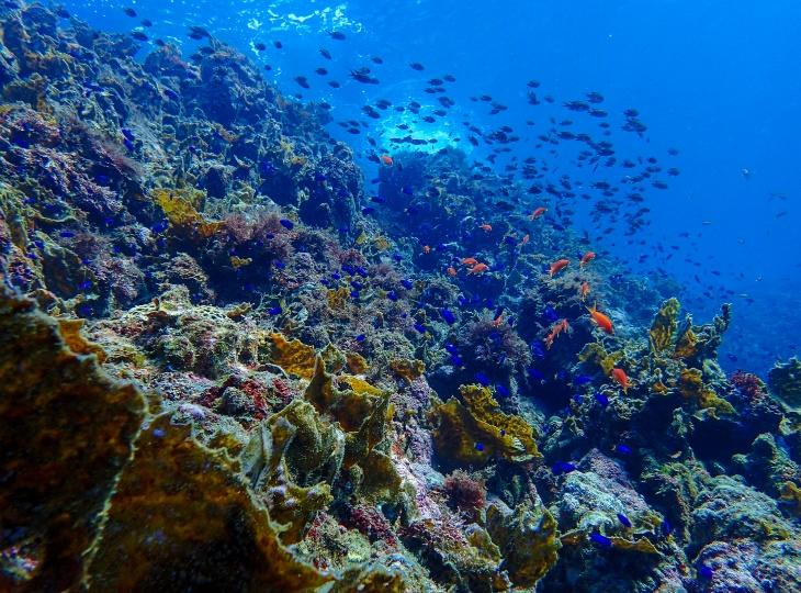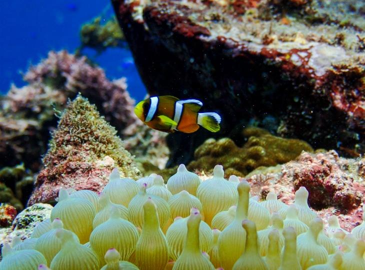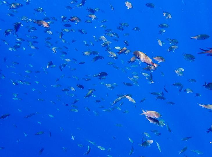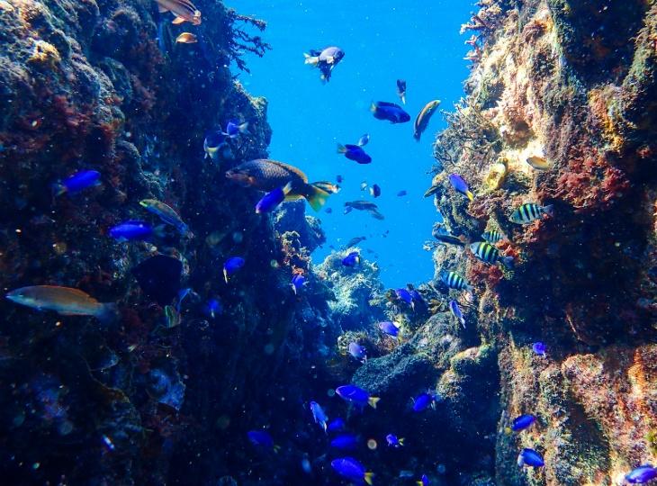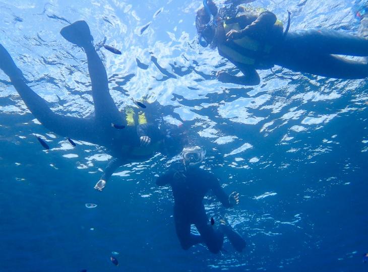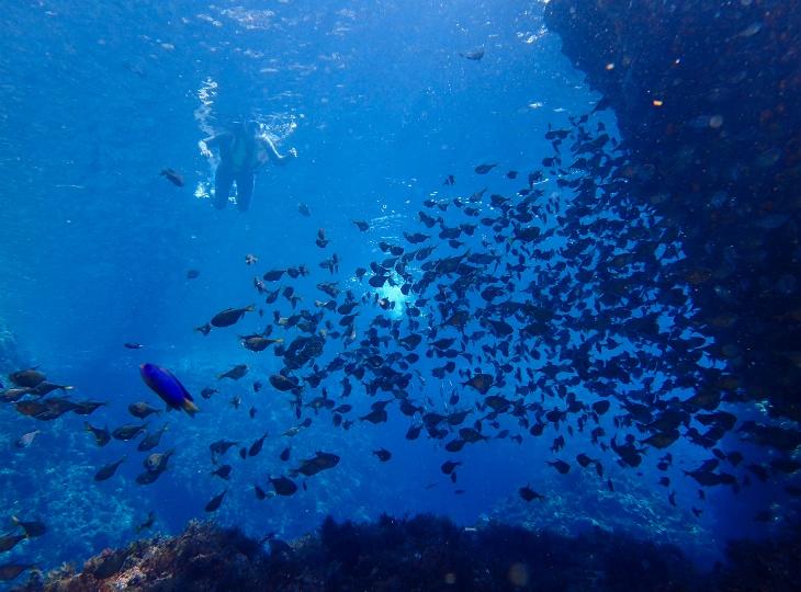 ▲ヒリゾ浜はシュノーケリングに特化した海岸で、伊豆で一番……いや! 本州で一番といってもいいくらいの透明度で、サンゴ礁や色鮮やかな回遊魚がたくさん生息しています。