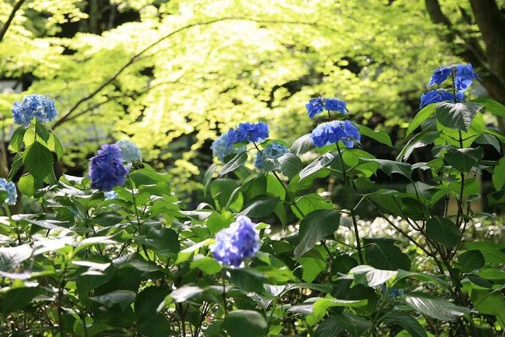 この時期の真如堂(左京区浄土寺真如町)では、青もみじと紫陽花がきれいです。