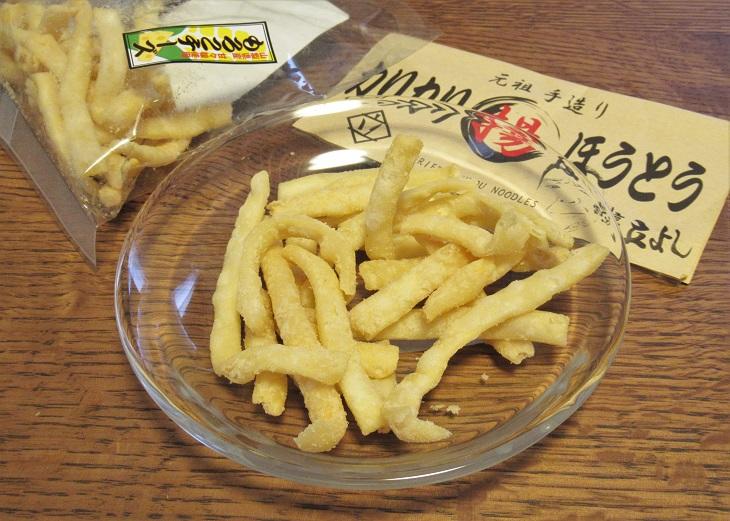 お次は「カリカリ揚げほうとう・もろこチーズ」(100g)いってみましょう。