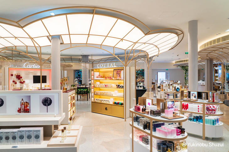 それぞれの売り場を彩る内装も見応えがあります。ポン・ヌフ側の百貨店棟(化粧品売り場を除く)を担当したのがカナダのヤブ・プッシェルバーグ、化粧品売り場をフランスのユベール・デ・マレーブとリヴォリ側の百貨店棟をフランスのシグーが、上得意さま用のプライベートラウンジをatelieramoがデザインしました。