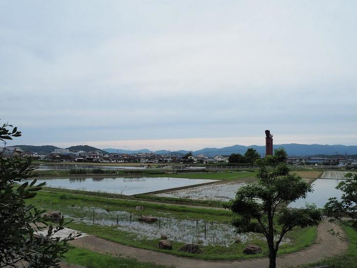 天正10年の梅雨は、眼下の景色がすべてが水没してしまったのです。備中高松城は正面に見える高松稲荷の大鳥居の右側に位置します。現在は民家が立ち並び城跡は見えませんが、当時はここからよく見えたのだと思います。