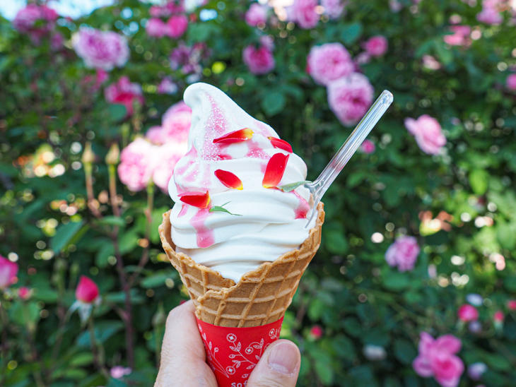 バラの香りに包まれて、バラ香るローズソフトクリームを食べる時間は格別!