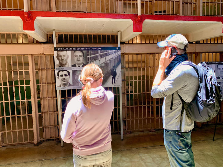 オーディオツアーは、一般の独房、懲罰室、食堂を(日本語だと)声優さんがナレーションしてくれて臨場感あふれる話っぷりで、とても楽しい。前回から刑務所内外の補修工事は終わっていないので、一部工事用シートが被っていますが、逆に今まで見学できなかったと場所にも行け、リアルな元刑務所を見ることもできます。見学者が最も集まり、写真を撮る監房が、#138、#150、#152です。1962年6月11日にいなくなった3人の独房です。