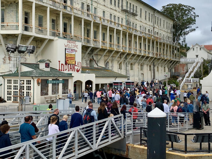 6月15日ほぼ通常になって以降、たちまち3週間先まで売り切れのアルカトラズ島です。運よく最後の一枚が買えたので、夏場のアルカトラズ島の様子を見てきました(びっくりしたのが、購入した瞬間に本当に"Sold Out"表示がでた)乗船人数は、コロナ前の人数フルの350人…再開時は150人だったことを思うと沢山の人が乗船しています。