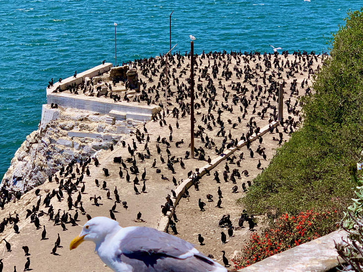 船上からポツポツ白く見えるのは、ウエスタンガル(Western gull/アメリカ大背黒カモメ)。カリフォルニア州には4種類のカモメが生息してるそうですが、サンフランシスコ周辺では最もよく見られている種類が