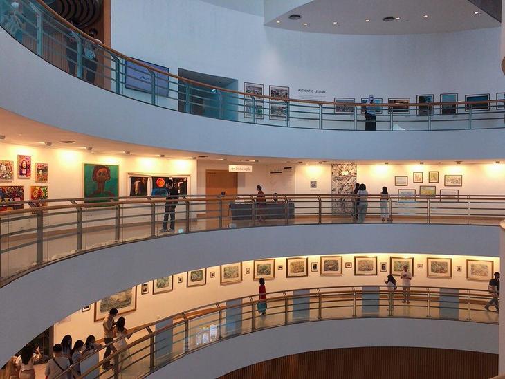 内部は解放感あふれる吹き抜け構造になっていて、9階まで続く螺旋状の白く美しい通路がギャラリーになっています。最先端アート・写真・映像作品など個性的な作品ばかりなので、アート初心者でも十分に楽しめます。どこを撮ってもインスタ映え抜群で、多くの若者や学生カップルがポーズをキメて撮影する光景を見かけます。