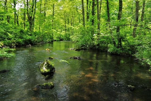 ハンノキなどの合間を縫う美しい流れを特徴とし、一年を通して人気のスポットです。