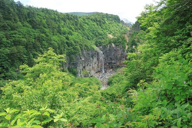 こちらは、登山道を進んだ先の稜線から望む白糸の滝です。