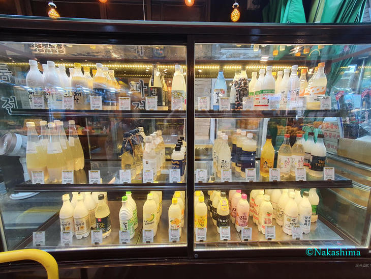 いろんな珍しい種類のマッコリがケースに並べられていて、その種類の豊富さについ立ち止まってしまいました。