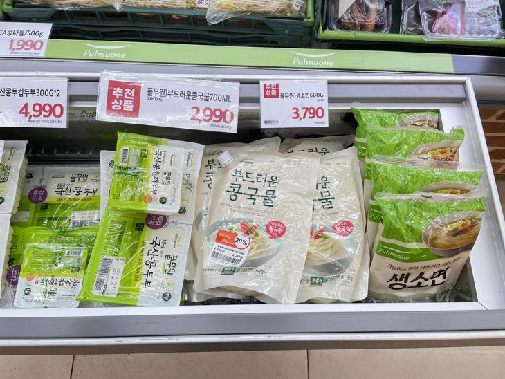 スーパーでは自宅で作れるようにコングクスのスープをパウチやペットボトルで販売されています。