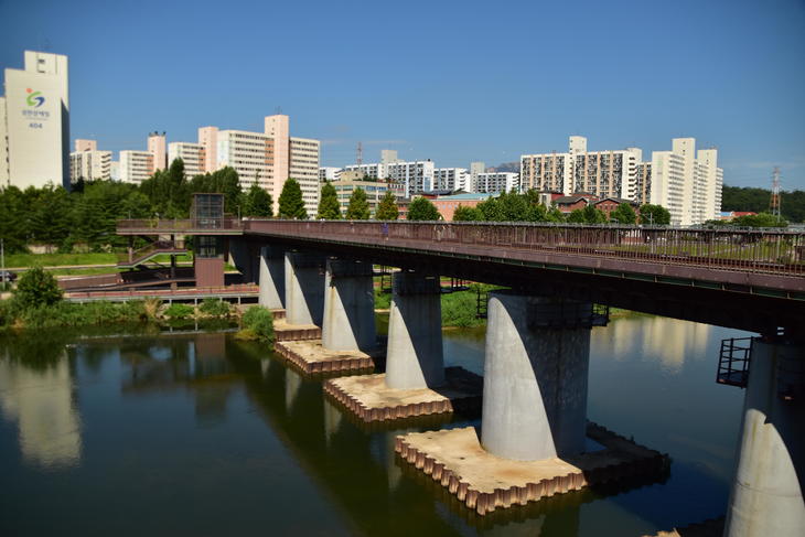 2010年12月以前はガタンゴトンと日本でいう特急電車のような電車がゆっくり渡っているのを見ることができた京春鉄橋。