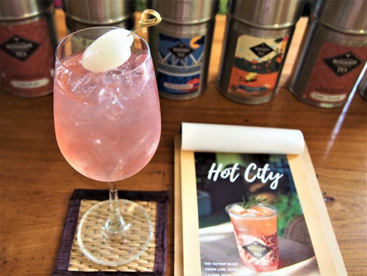 ティーモクテルもいただけます。こちらはモンスーン・ブレンド・ブラック(Monsoon Blend Black)とドイ・ステープ・ブレンド(Doi Suthep Blend)というお茶に、ライム・ライチ・自家製シロップがブレンドされた「Hot City」。ピンク色がかわいくて、ライチの甘い香りがよくておいしい。