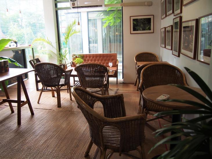 2階はカフェスペースになっており、ゆったりとくつろいでお茶を楽しむことができます。壁には北タイの森で茶摘みをする風景の写真などが飾られ、味わい深くてじっくりと見入ってしまいました。