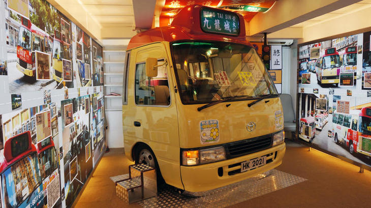 正面入口には、昔の佐敦(Jordan)、油麻地(Yau Ma Tei)の西側の町並みを再現したミニチュアがディスプレイされています。奥には、前輪の後ろ以降をカットした本物のミニバスが置かれています。ミニバスを購入して、後ろをバッサリとカットしたそうですが、10万香港ドルかかったそうです。もちろん運転席にのれますし、助手席にもダミーのハンドルをつけて、助手席からでも運転手気分を味わえます。