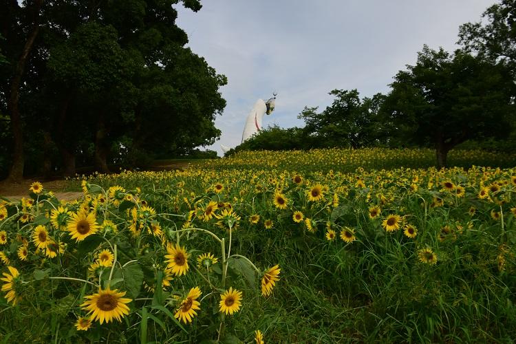 こんにちは。大阪特派員のかおりです。連日猛暑な大阪です。大阪にお越しの際は、こまめな水分補給や日傘など、熱中症に備えて万全の態勢でお願いします!夏の花ヒマワリが、吹田市にある万博記念公園で見頃となっています。2021年8月9日(祝)までひまわりフェスタ開催中で、土・日・祝日にキッチンカーが出ます。約4000平方メートルの面積に、26品種約12000本のヒマワリが植えられています。場所は自然文化園の中央に位置する、春にはチューリップが植えられているチューリップの花園です。