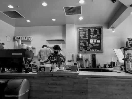 今回紹介するBarefoot Coffee Roasterは、大通りに面し、PruneyardやWhold Foods Campbell店といったショッピングエリア至近の非常に利用しやすい立地にありながら、そこに店舗があると意識していなければ、さりげなく見過ごされるように存在しています。