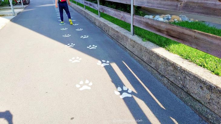 駅を出ると、道にクマの足跡があるのでその足跡を辿りながら進むと、自然公園の入口に到着。