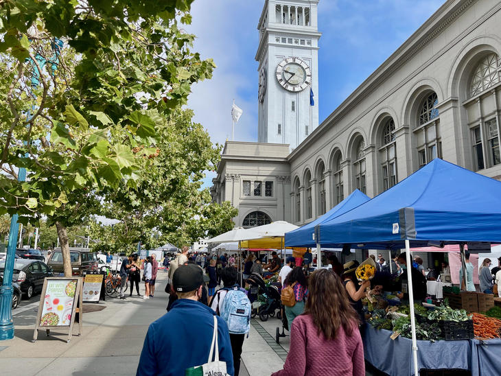 一方、コロナの状況は、先月からデルタ株による感染者が急上昇しているサンフランシスコ・ベイエリア。その両方の事情から今週のファーマーズマーケットの買い物のお客さんたちのマスク率は、8割くらいに増えています。