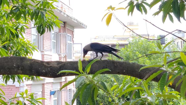 ネパールのカラスは日本のより小ぶりで色合いもきれい(黒ベースで首周りだけ灰色)なので、不気味さや不吉さは感じません。