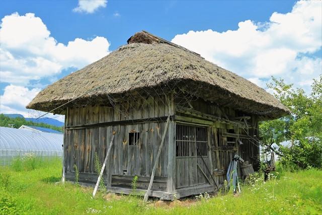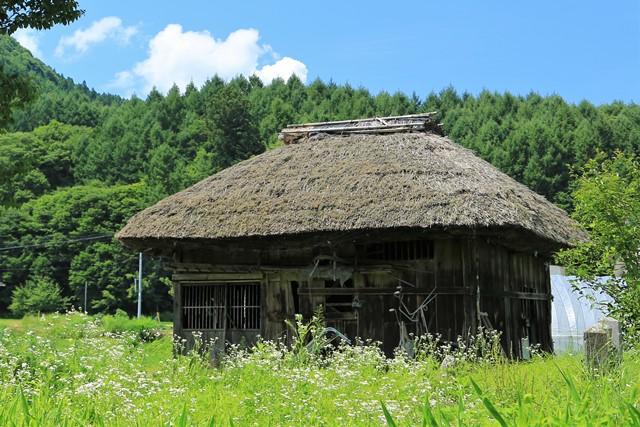 明治初期に建設された茅葺屋根の建物で、雨天時の作業小屋として使われていたものです。