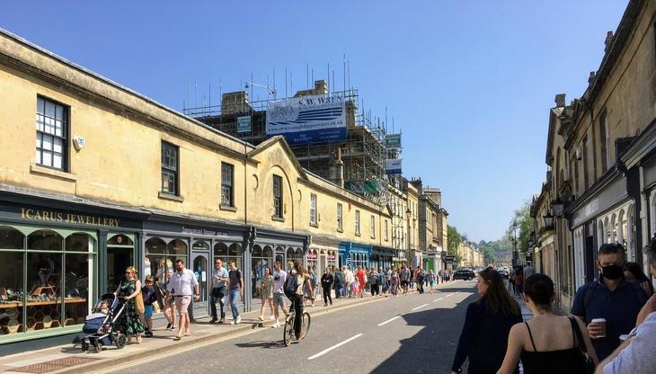 電車のバース・スパ駅を拠点に町散策へ向かったのは、午前11時。聖ジョン・エバンジェリスト教会を右手に正面を眺めた景色は、なんだか普段見ているイギリスと違う雰囲気。