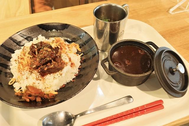 牛タンの盛られたランチプレートとミニダッチオーブンの煮込み牛タンカレーのコラボ。
