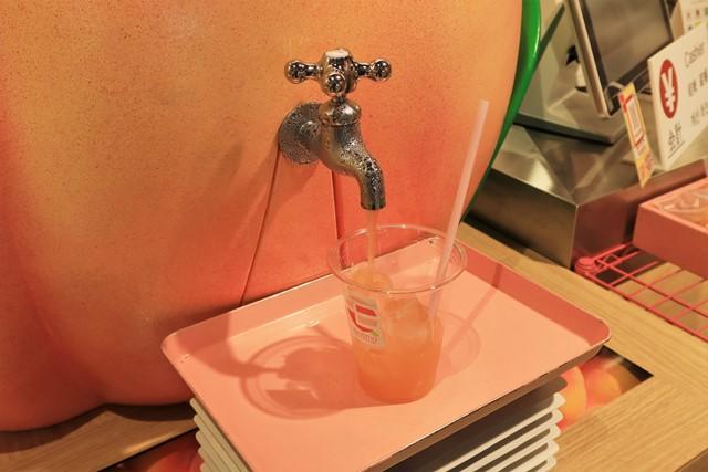 そのままですが、蛇口をひねると桃ジュースが出てくきます。