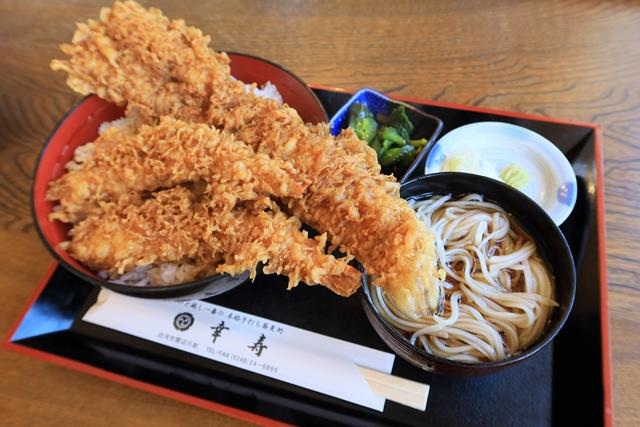 ミックス天丼↓(穴子丼+冷蕎麦・1560円)